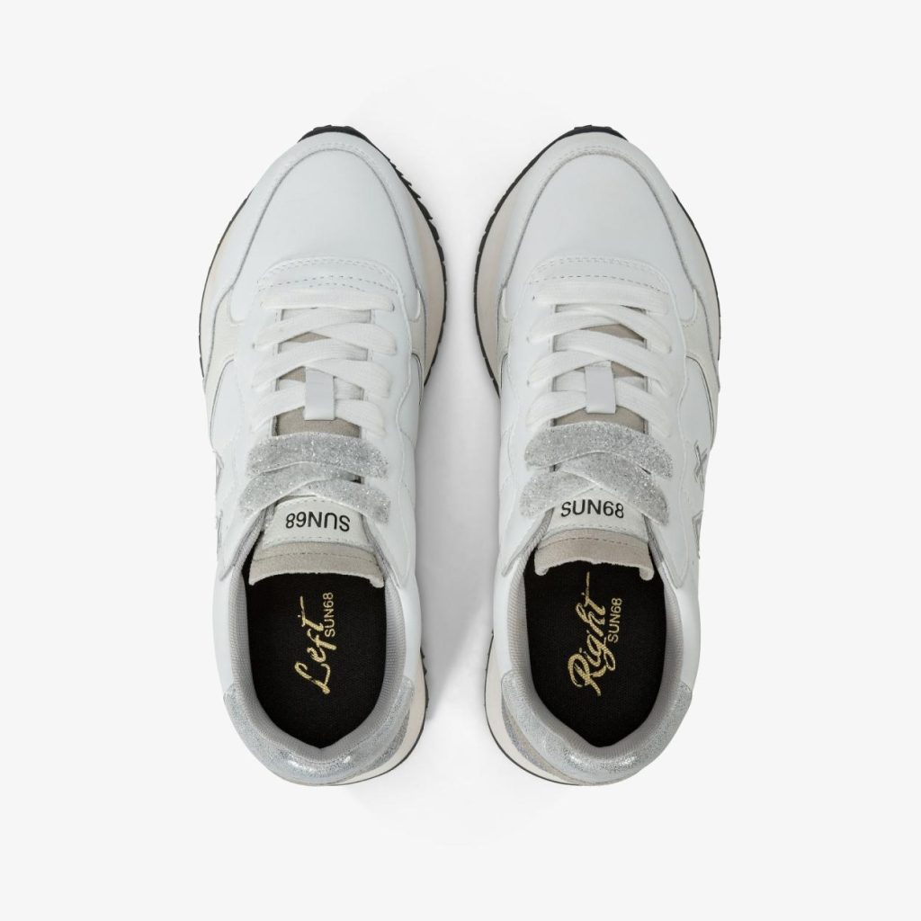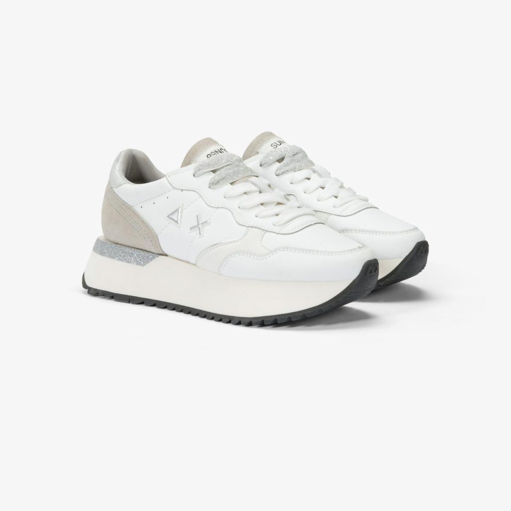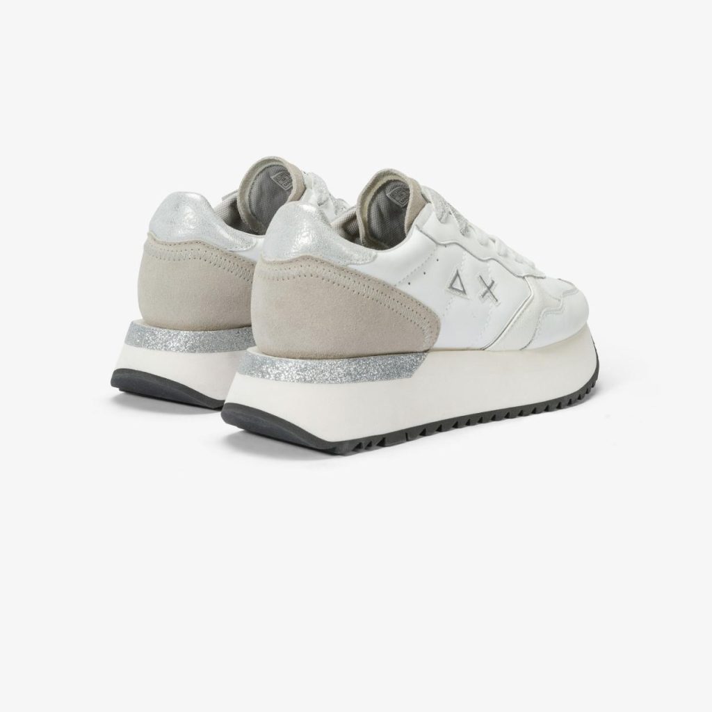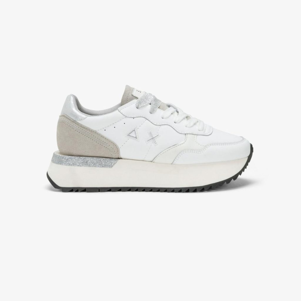 Accogliente nella forma e preziosa nel look, questa versione della sneaker Big Ally PU si caratterizza per la tomaia in pelle con dettagli glitterati e lacci in lurex. La suola alta in gomma leggera sostiene i movimenti e slancia la silhouette.